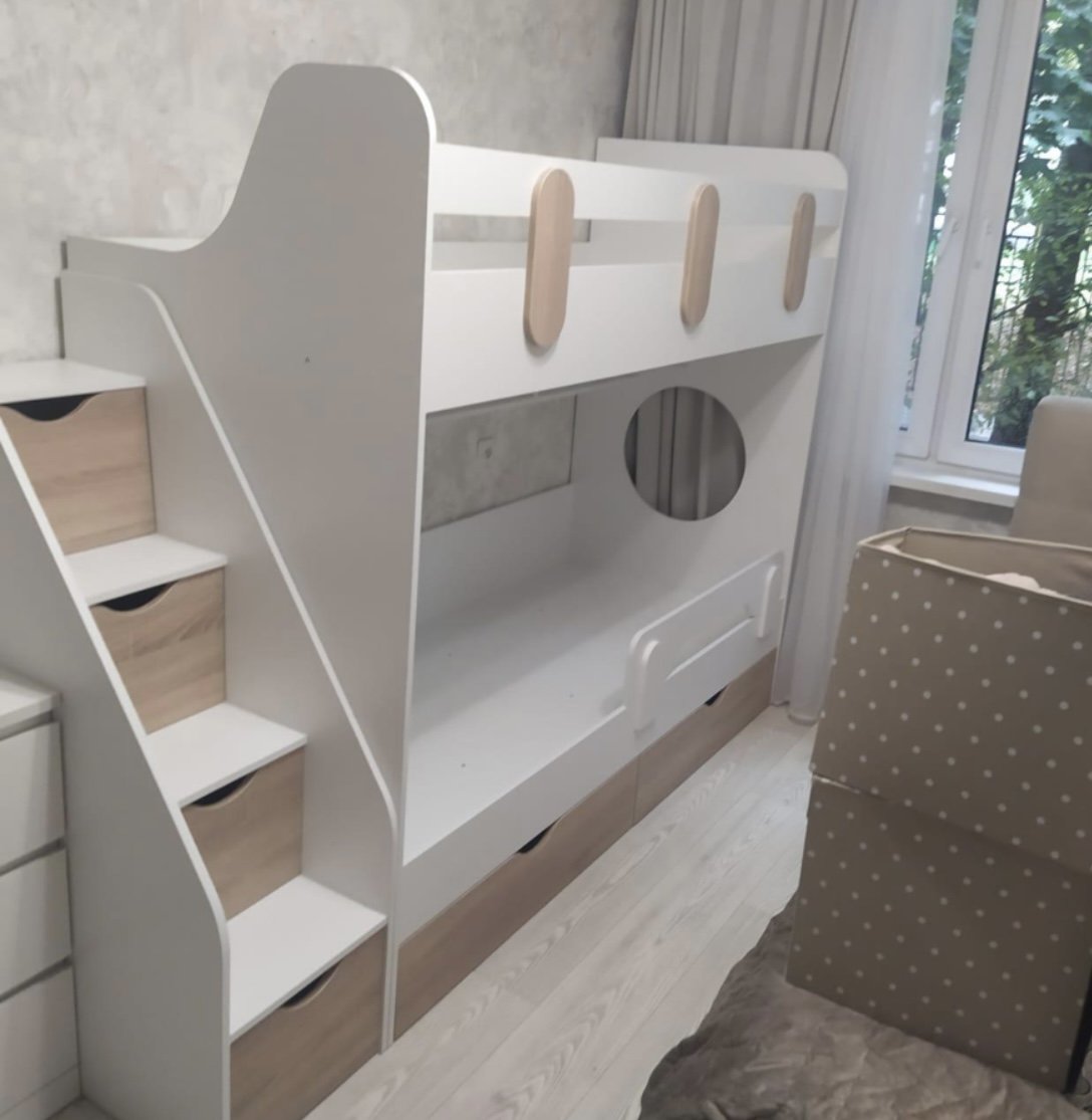 В ноябре 2023 года заказала в детскую шкаф и комод-тумбу. Мебель отличная! Не успели собрать и начать пользоваться- случилась неприятность, ночью на тумбу вылилась вода из неисправного увлажнителя, верхняя крышка-столешница конечно же впитала воду и вздулась. Написала менеджеру в чат, можно ли заменить (купить!) новую крышку для тумбы. Каково же было удивление, когда с фабрики ответили, что это возможно и сделают они это бесплатно!!! Благодарили, что мы честно признались и не оформили рекламацию))) Крышку пообещали прислать с очередной поставкой из фабрики в конце января. И прислали! Только что забрала ее из салона, теперь у нас тумба снова будет как новая. Благодарю компанию Династия Кидз за такое чуткое отношение к клиентам! А также за отличную качественную мебель. Муж собирал все сам, без проблем!